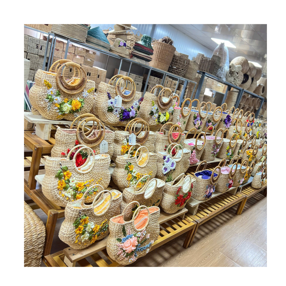 Vietnam handwoven water hyacinth tote with soft handles cotton lining lightweight straw purse for leisure or casual outing