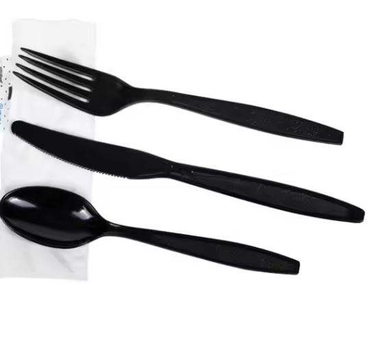 Vietnam origin Weight Kit Couverts Plastiques Jettables Black pp Heavy Duty Disposable Cutlery Knife Spoon Fork Set