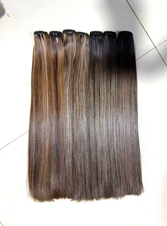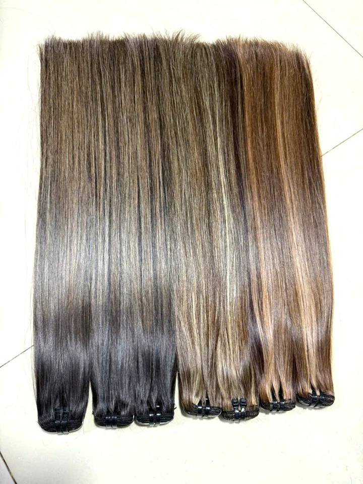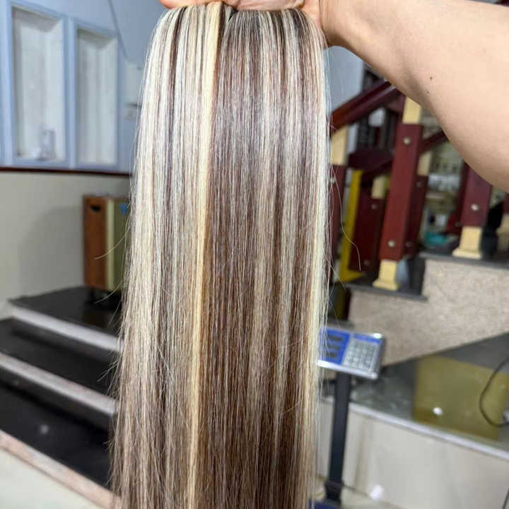 Extensions de cheveux vietnamiens 100% Remy, tissage plat de luxe sans couture, lisses comme des baguettes, coloris Piano.