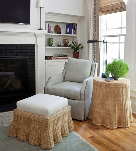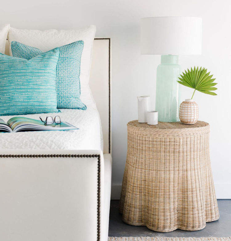 Vietnamese Artisans Rattan Stool Scalloped Side Table Natural Wicker Accent Table for Living Room, Bedroom, Home Decor Furniture