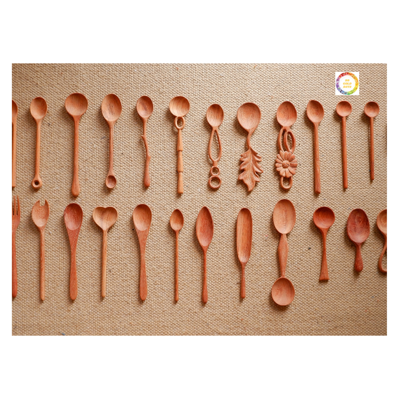 Cuillère en bois artisanale vietnamienne avec gravure de logo personnalisée - Cuillère à thé en bois traditionnelle en forme de cœur