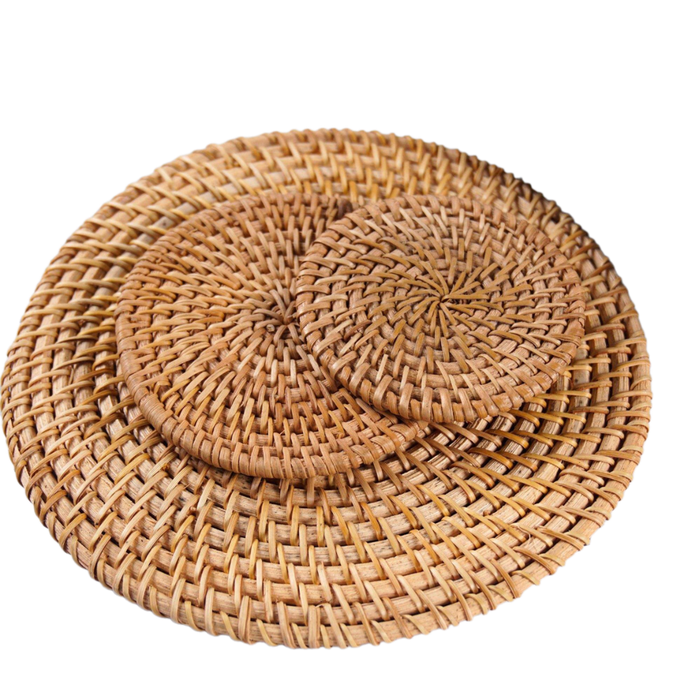 Sous-verres en bambou et rotin faits à la main au Vietnam, isolation thermique, écologiques, motif floral classique, décoration de fête, cadeau TUYET DUNG