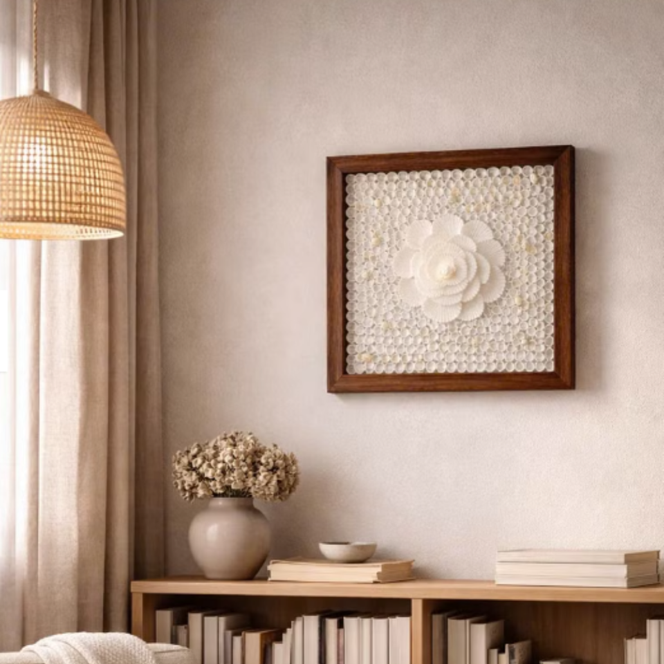 Décoration murale de luxe avec cadre en coquille de Capiz