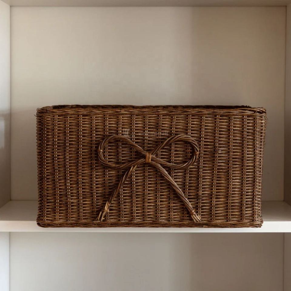 Panier de rangement rectangulaire en rotin fait main du Vietnam avec nœud, organisateur en osier durable pour la maison et la buanderie