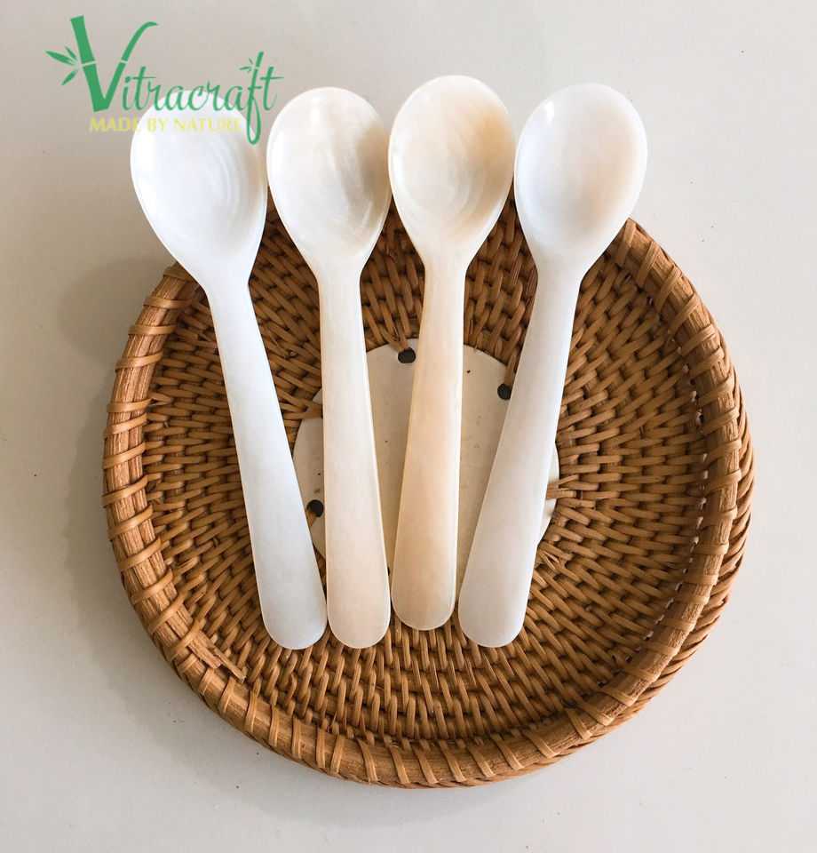 Cuillères vietnamien faites à la main. La cuillère est fabriquée à partir d'une coquille de perle blanche de haute qualité. Cuillère à Caviar, cuillère à café, cuillère à thé. Un cadeau significatif