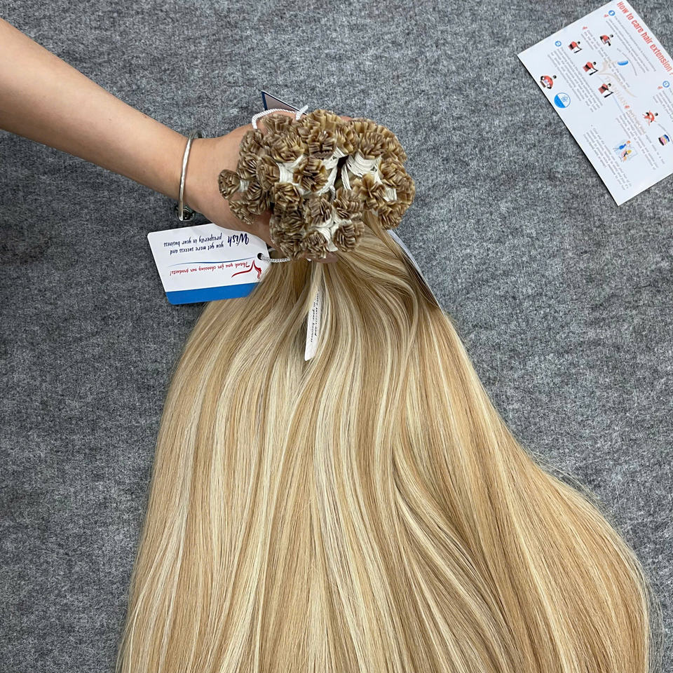 Extensions de cheveux vietnamiennes à pointes en kératine, cheveux humains Remy, pré-collées, double épaisseur, noir naturel, lisses, couleurs piano