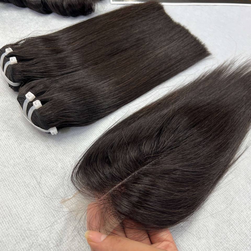 Vietnamese Manufacturer 100% Soft and Silky High Quality Raw Hair Black Bone Straight Genius Weft Machine Bundles From Qhair