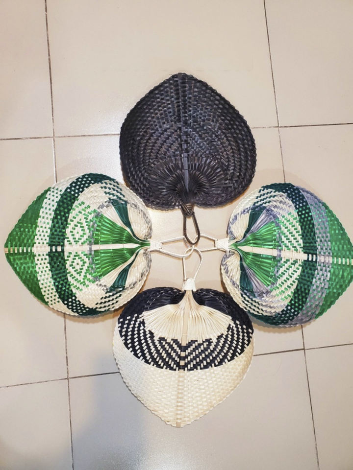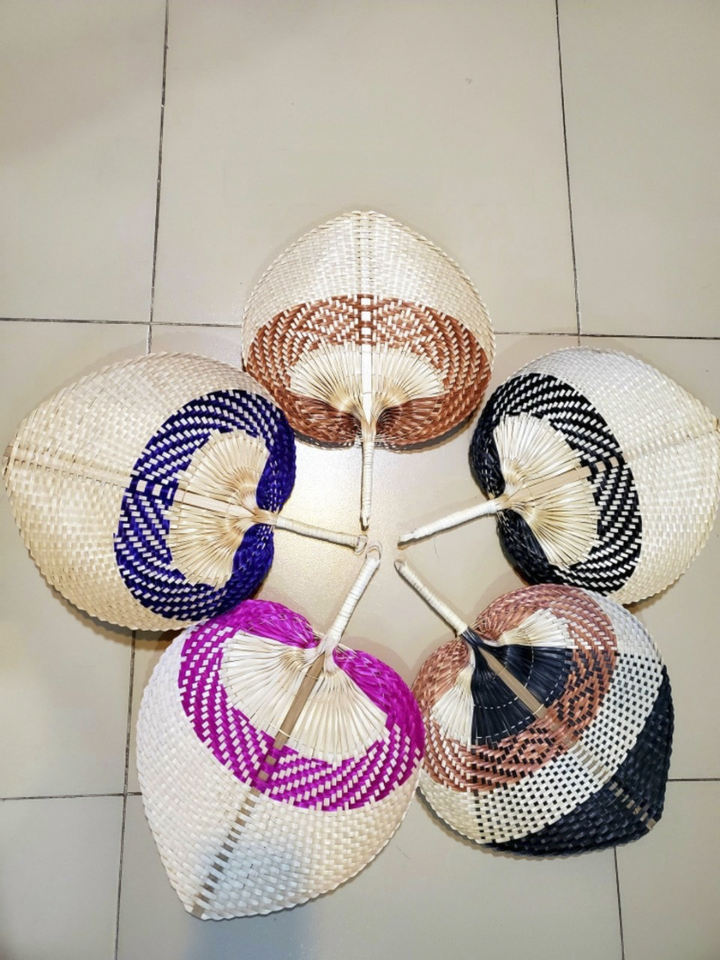 Ventilateur de plafond artisanal vietnamien en feuilles de palmier naturelles et bambou tressé, peint à la main, décoration intérieure 99GD