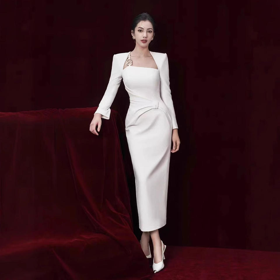 Niche vietnamienne nouveau tempérament Design soirée femme robe Style intellectuel fente taille longue robe