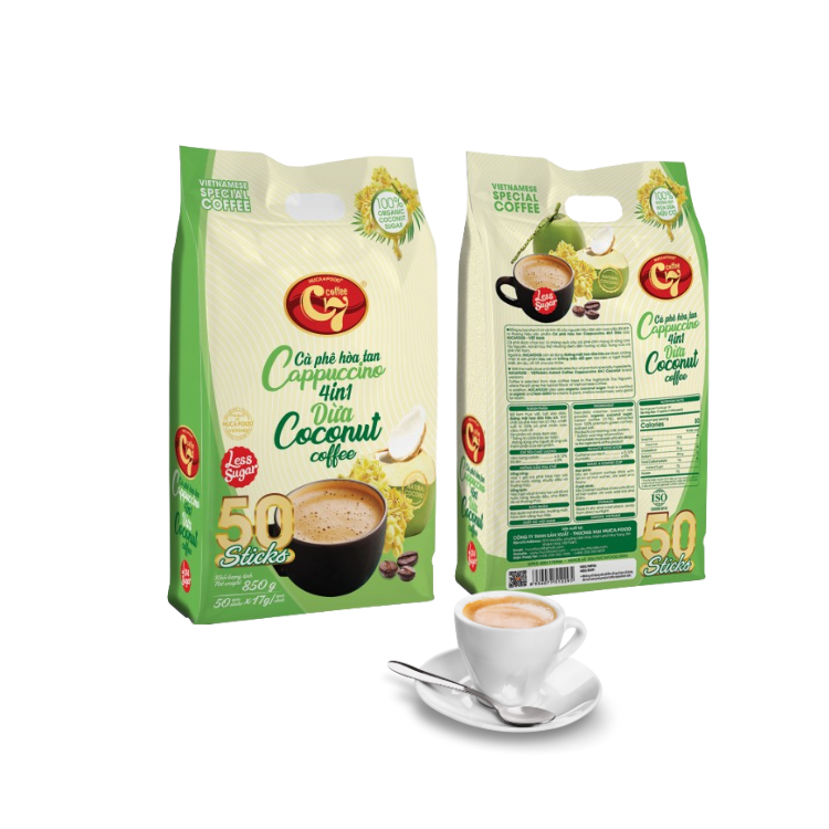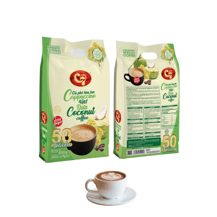 Vietnamien ODM Service Cappuccino instantané café en poudre chocolat moelleux eau chaude noix de coco sucre boîte emballage bonne vente