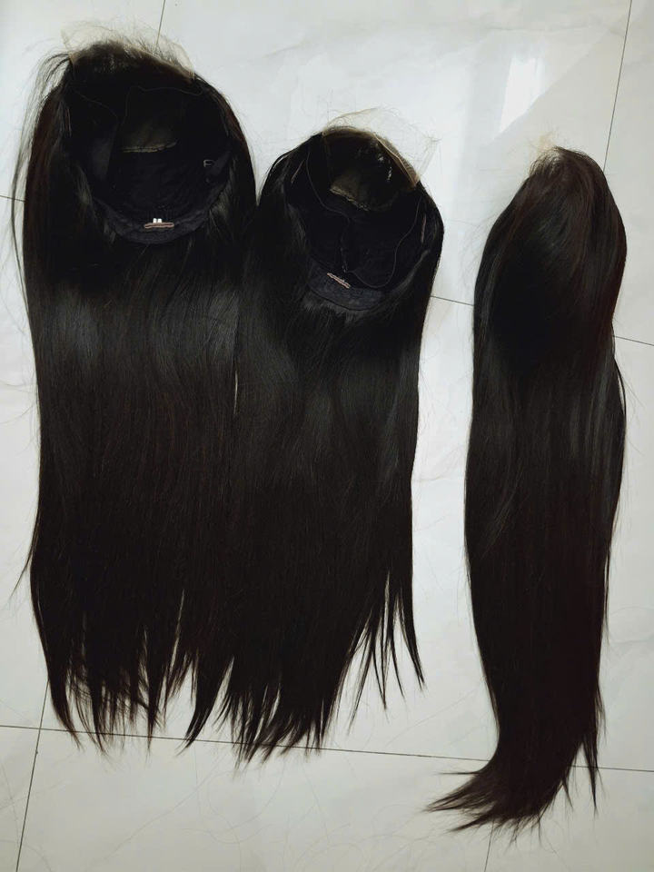 Extensions de cheveux humains bruts vietnamiens haut pour perruque de fermeture de dentelle suisse avec des cheveux à double trame de tissage droit d'os de bébé
