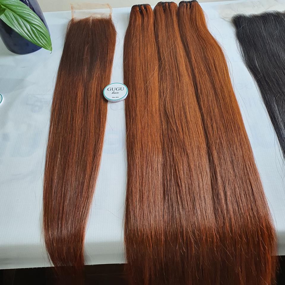 Vietnamese Remy Hair Extensions 3 Super Double Drawn Bundles Straight Ginger Orange Color Raw Hair GUGU HAIR 100g MOQ Wholesale