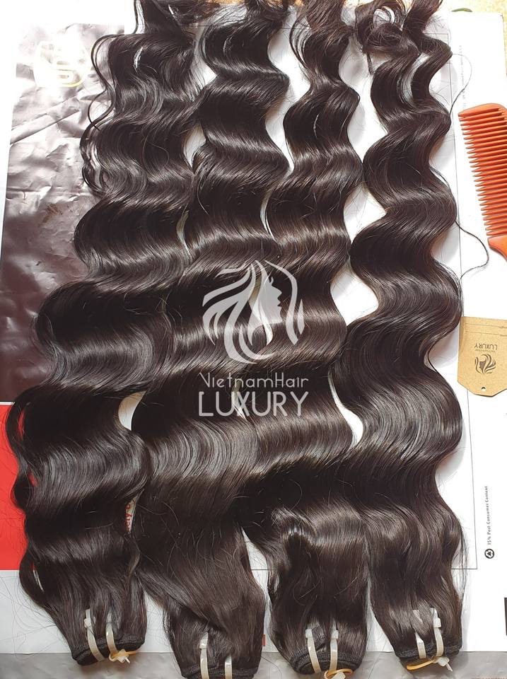 Cheveux Remy vietnamiens super double drawn, cuticules alignées, ondulations profondes, tissage machine, prix de gros, fournisseur du Vietnam