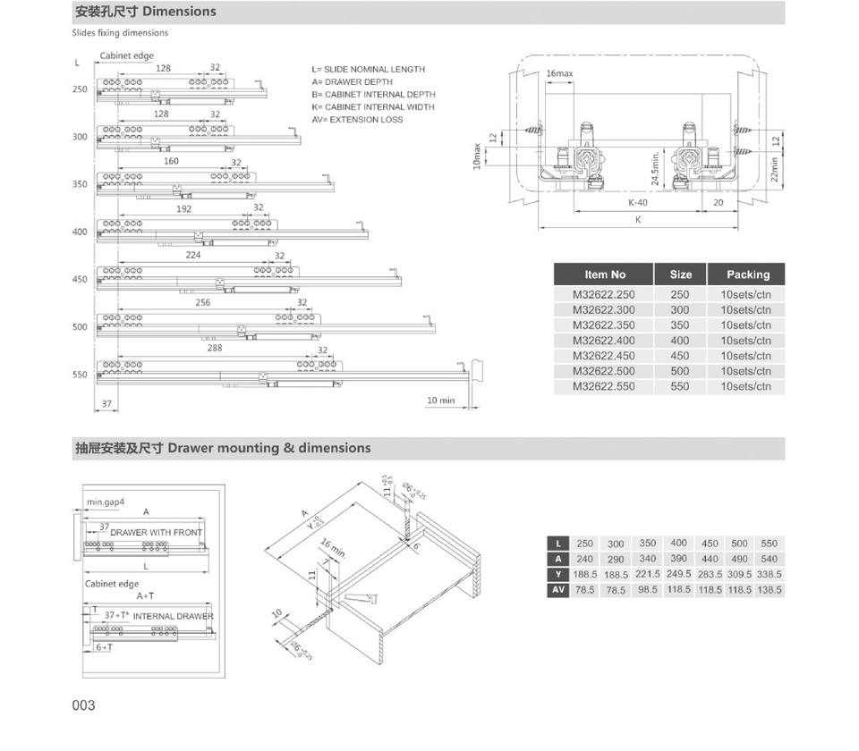 Diapositives télescopiques à ouverture par poussée à extension unique vietnamienne 3/4 avec goupille fixe pour tiroir de meubles modernes