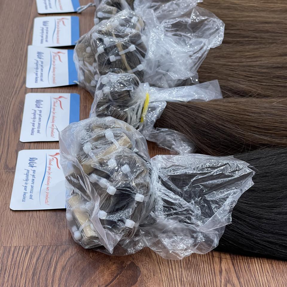 Extensions de cheveux vietnamiens lisses en bande, vente en gros, cheveux humains vierges Remy, texture douce et naturelle, réutilisables, qualité salon