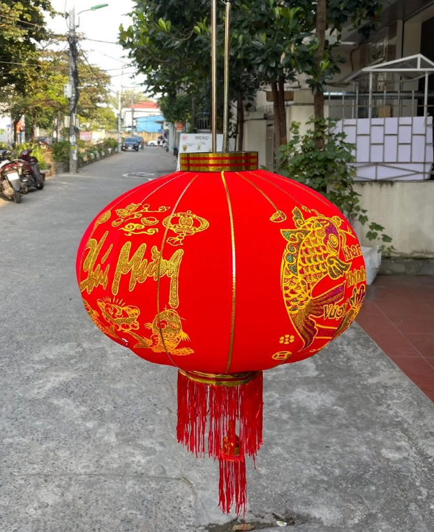 Vietnamese Velvet Red Lantern 1m - Large Festival Decoration for Pagodas, Events, and Holiday Displays