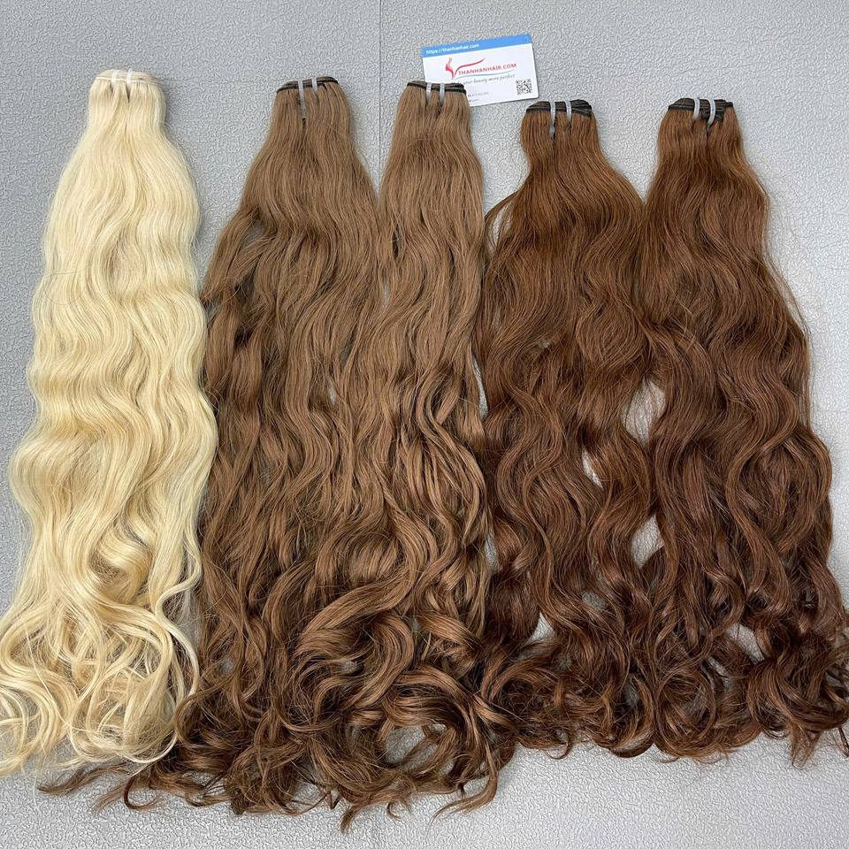 Extensions de cheveux humains vierges vietnamiens Machine ondulée naturelle trame brune blonde tisse des faisceaux de cheveux