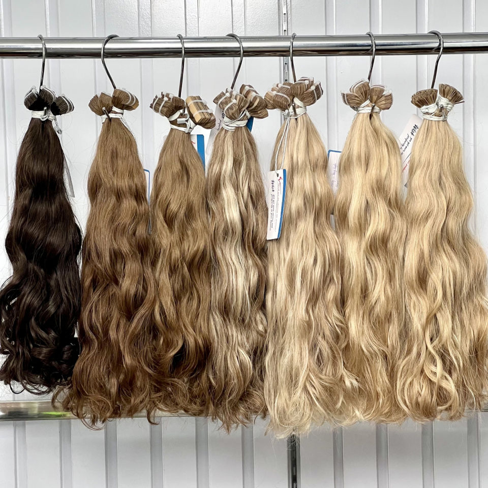 Extensions de cheveux vietnamiennes ondulées en gros, texture naturelle Remy, super double drawn, double trame, douces