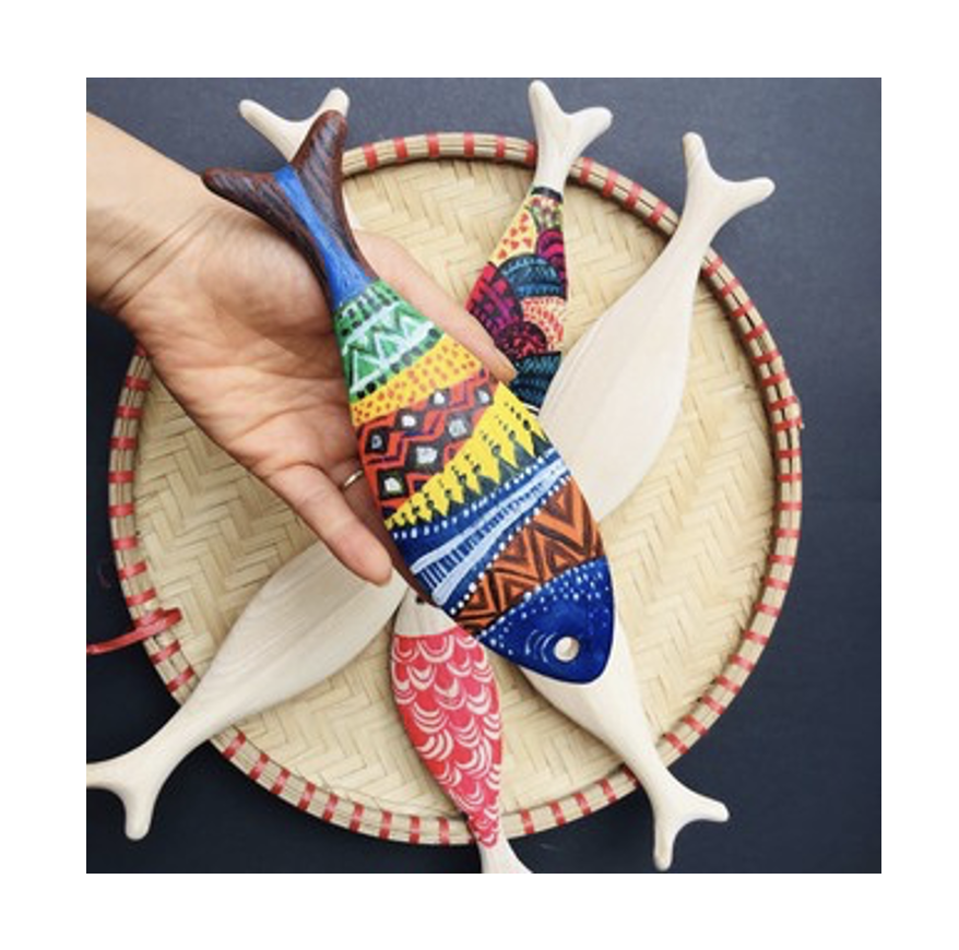 Vietnamese Wooden Fish Animal Statue Craft for Souvenir Gift Home and Office Decor