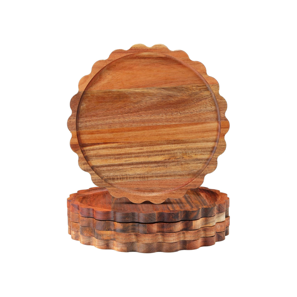 Product name:Natural acacia wooden Scalloped dinner plates