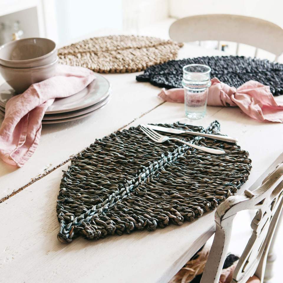 Chemin tissé rustique de Vietrustic avec des napperons ensemble de napperon de jonc de mer vaisselle de cuisine et décor
