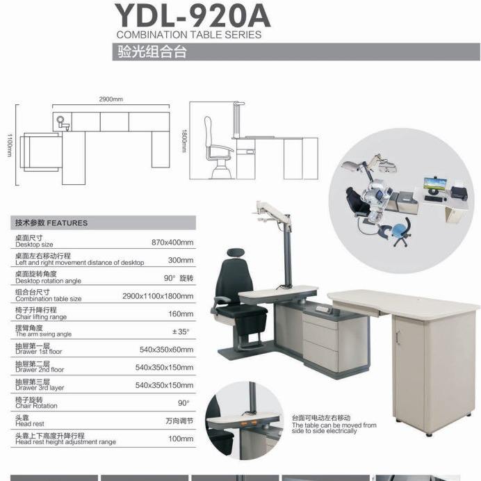 Table d'optométrie informatisée Vigen YDL-920A avec fauteuil électrique et accoudoirs réglables pour examen de l'acuité visuelle