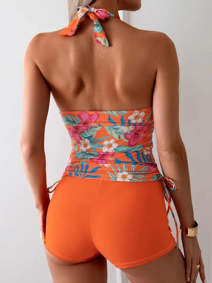 Vigoshely 2026 Ensemble Tankini Imprimé Halter pour Femme, Maillot de Bain Taille Haute Sexy Push-Up Dos Nu