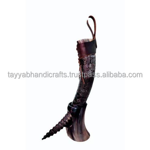 Viking Drinking Beer Horn Natural Eco Friendly Ox Horn Beer Drinking Mug Agate by Tayyab Handicraft
