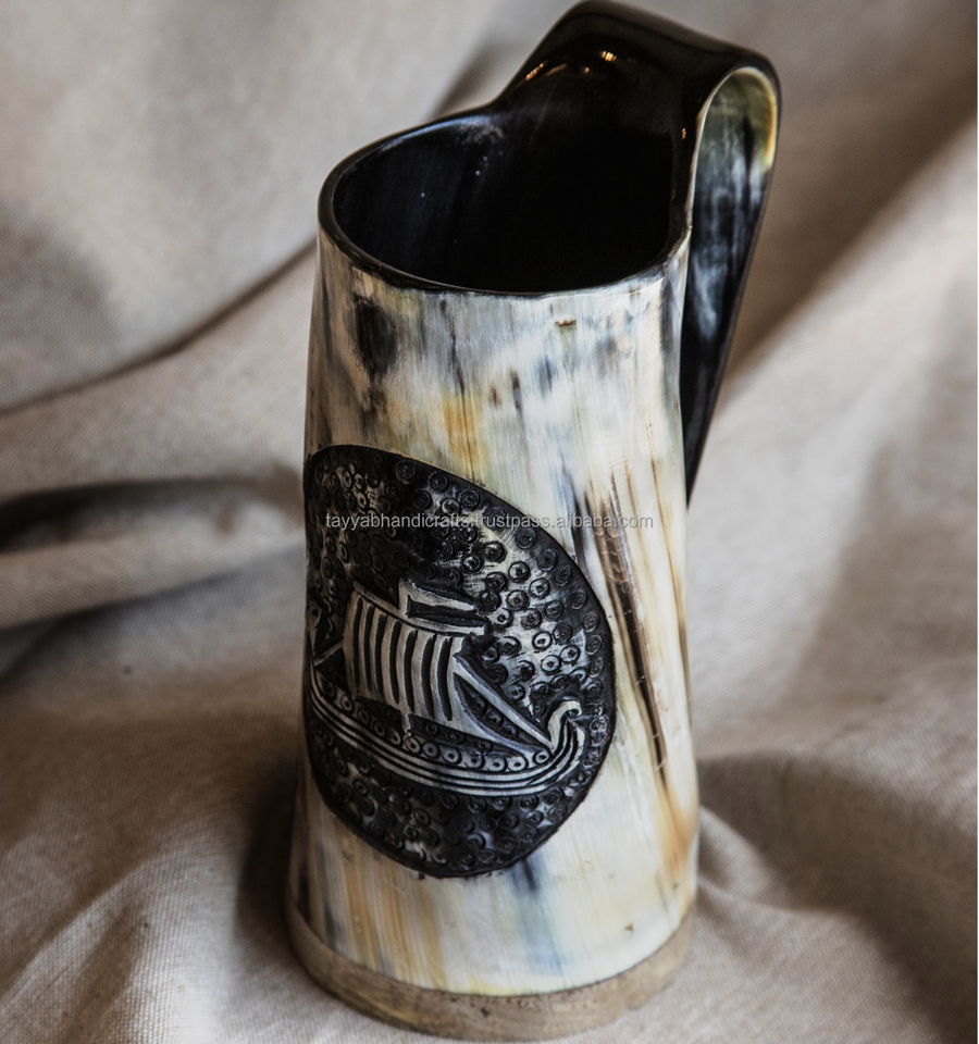 Viking Drinking Horn Mug Natural Polished Animal Engraved for Christmas Decor Personal Use