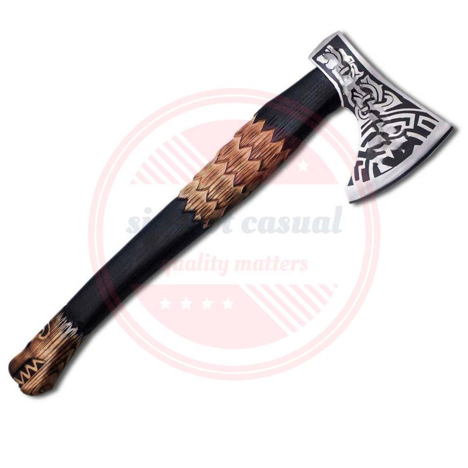 Hache Viking faite à la main en acier au carbone Hache de survie Tomahawk haute pour camping