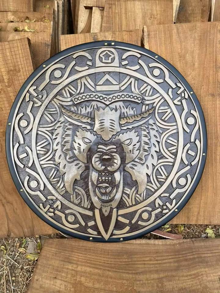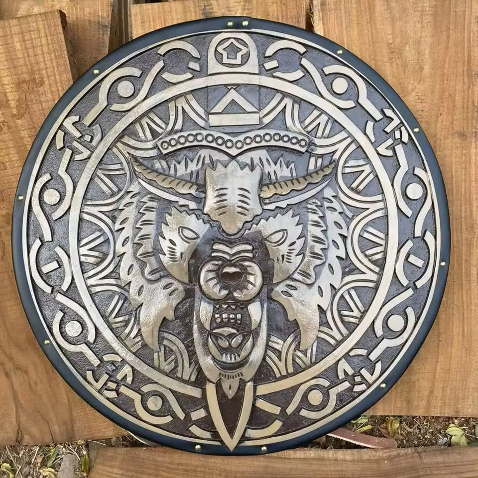 Bouclier Viking en métal rond, prêt pour le combat médiéval, de haute qualité, durable, gravé, personnalisé, avec revêtement en poudre, objet de collection artistique