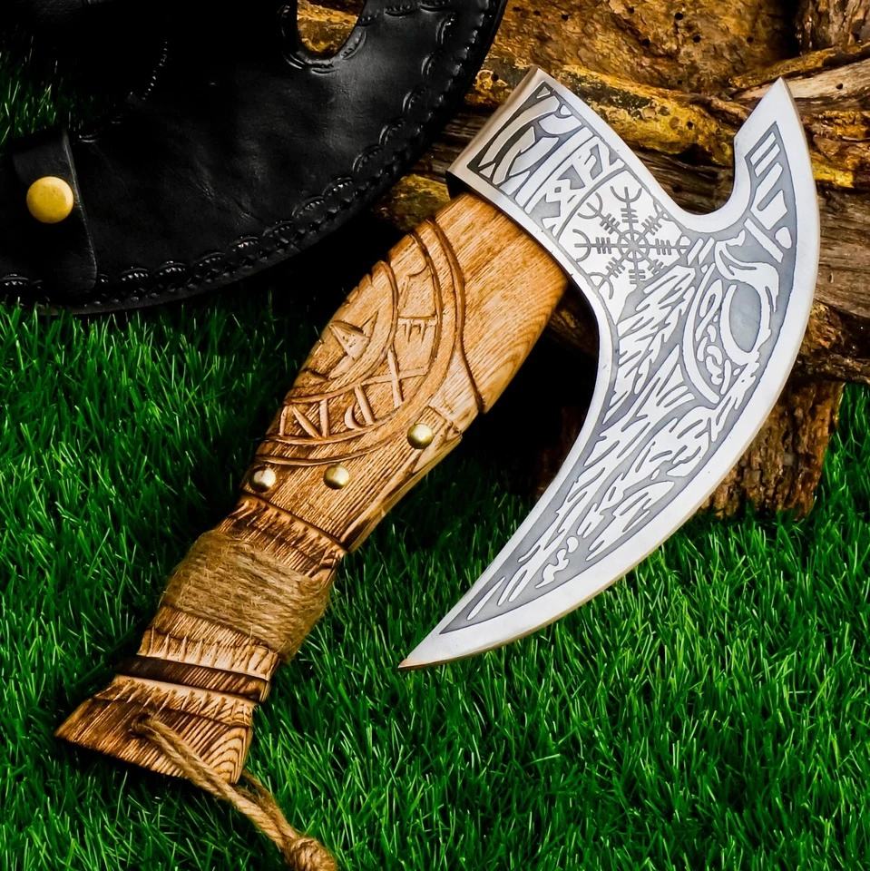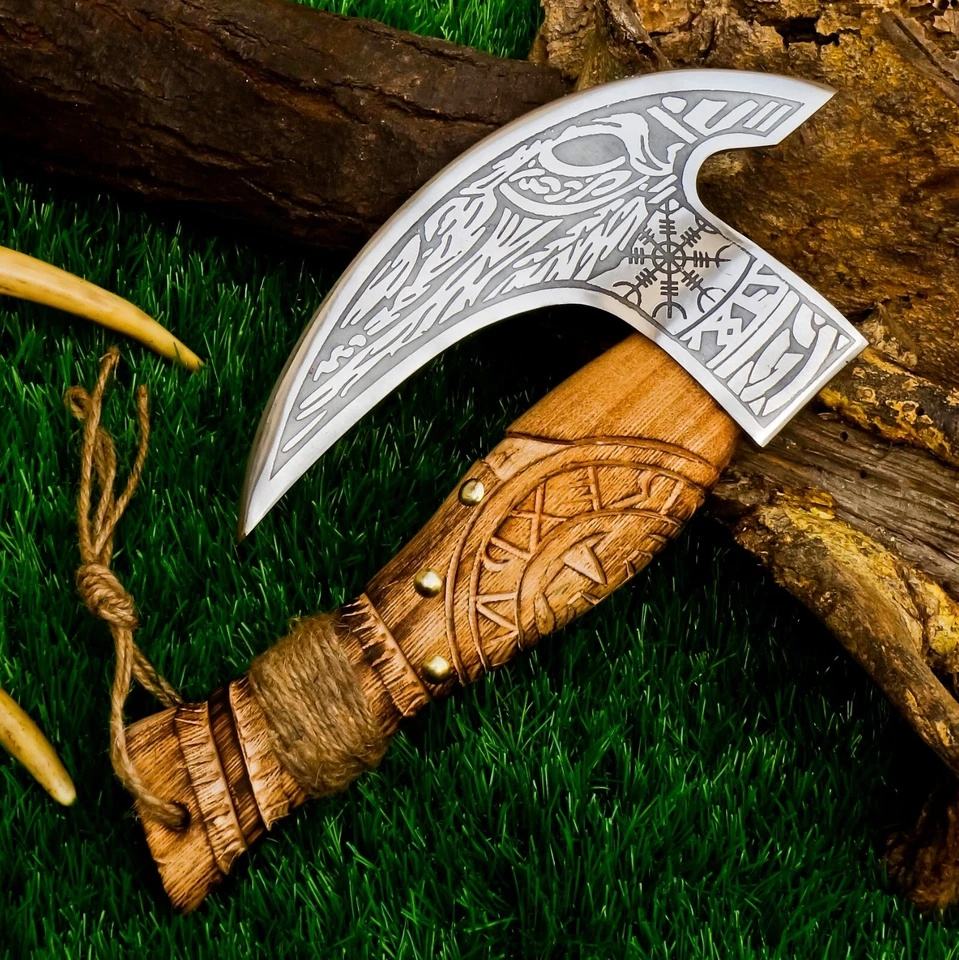 Coupe-pizza de style viking, lame en acier inoxydable gravée, manche en bois, outil de cuisine, coupe-pizza personnalisé