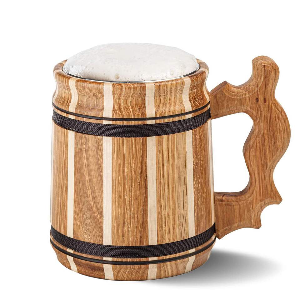 Mug en bois avec bord en acier de style viking