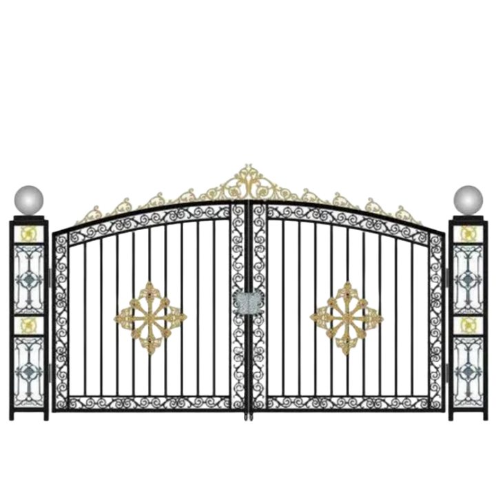 Conceptions de porte de villa et arc de jardin Portes en acier en fer forgé Portes modernes rétractables personnalisées en fer forgé