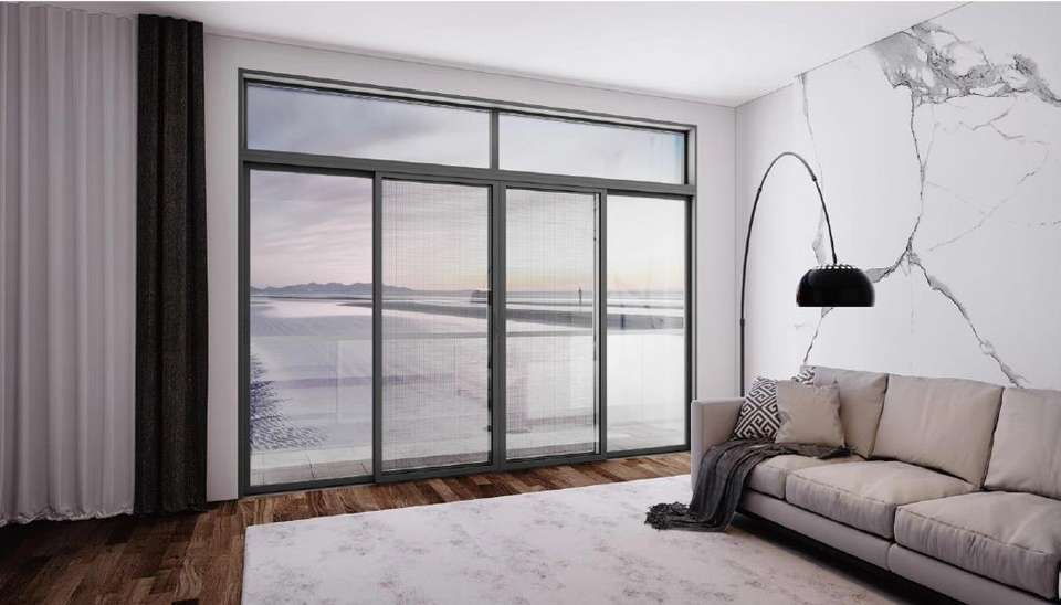 Porte coulissante vitrée double rail robuste pour villa et commerce, avec moustiquaire, conforme aux normes australiennes