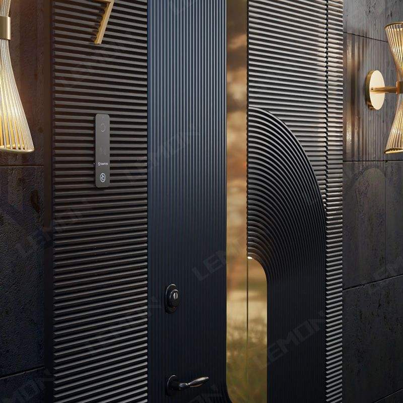 Porte d'entrée extérieure pivotante intelligente de luxe à prix abordable, en aluminium moderne, pour villa