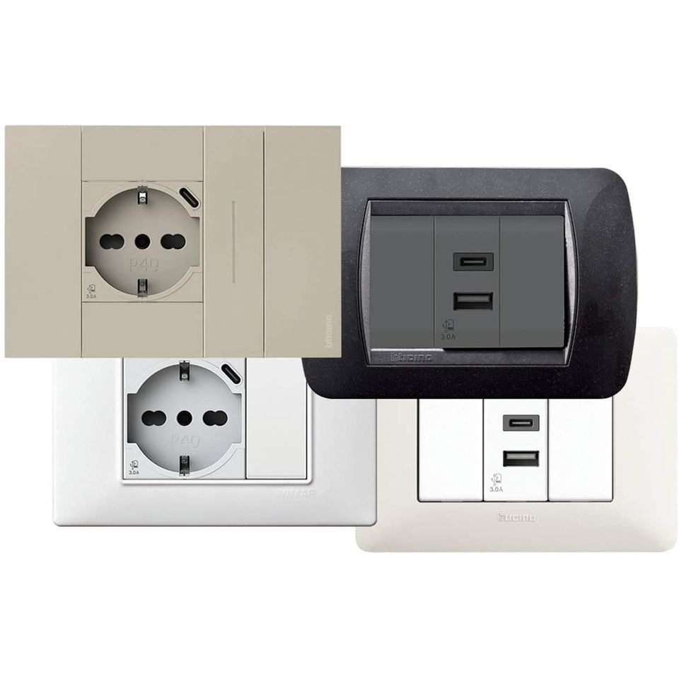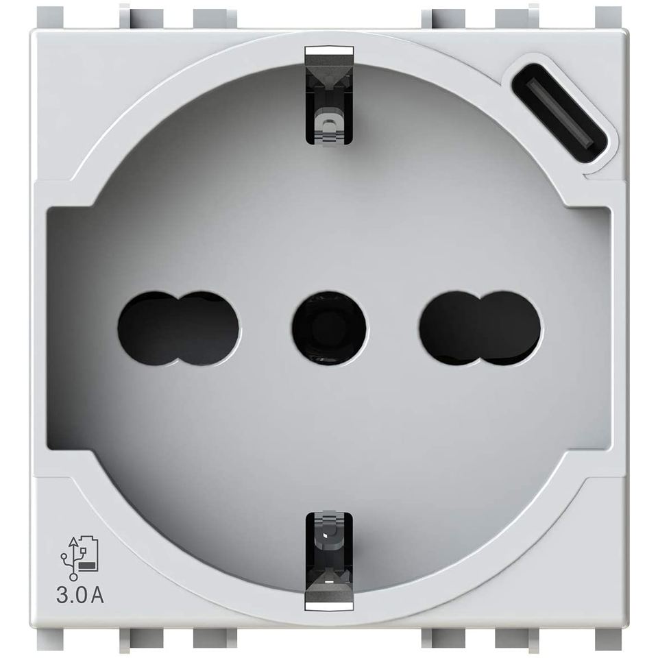 Prise murale Vimar 4Box P40 Schuko avec port USB Type C 3.0A 230V, blanche