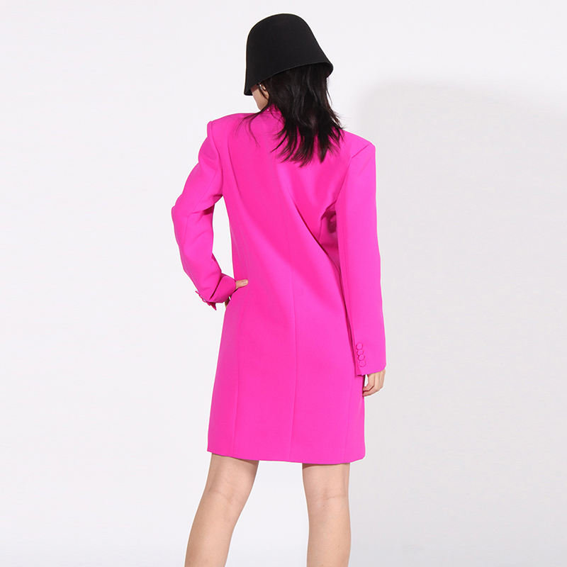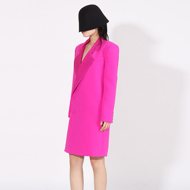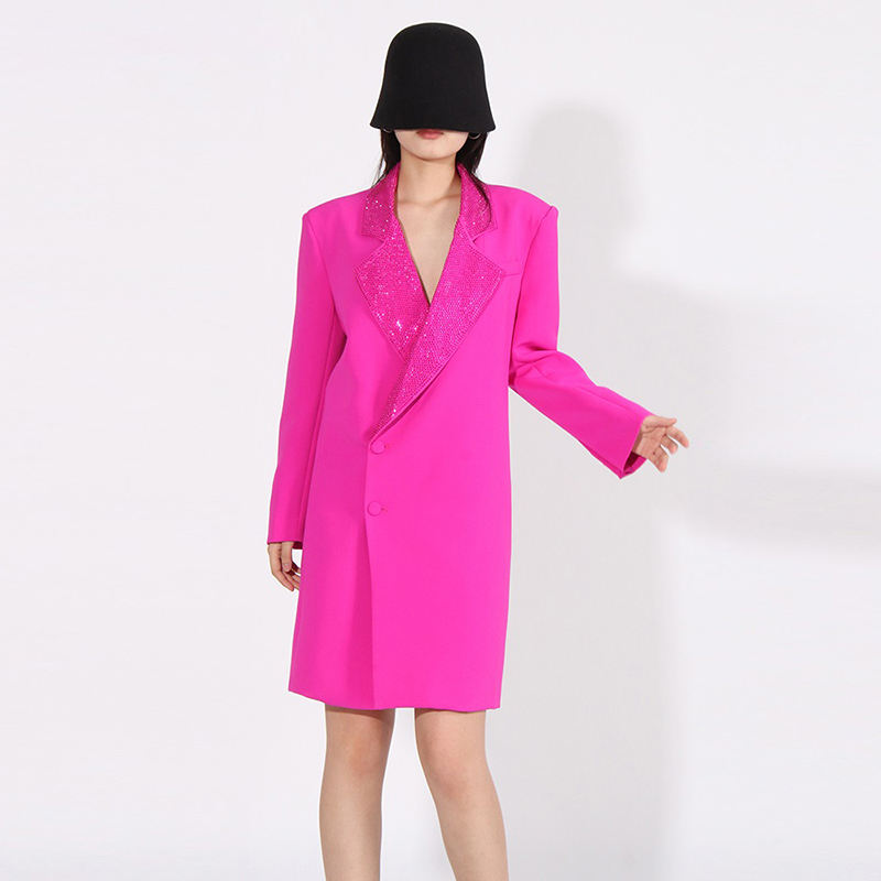 Vintagas Blazer simple boutonnage Long manteau avec diamants épissés col cranté vêtements d'extérieur décontractés tissu tissé teint en plaine