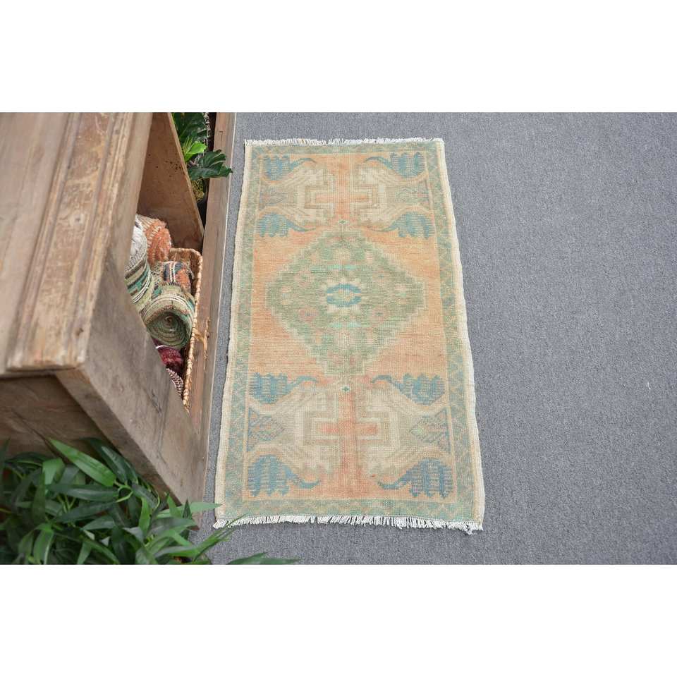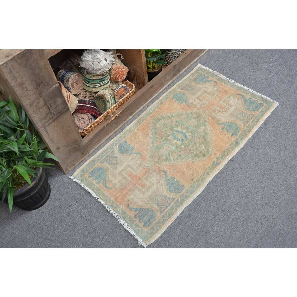 Tapis en laine turque vintage de 1.6x2,9 pieds, tissage à plat patchwork beige et bleu pour les décorations de salon, support en latex