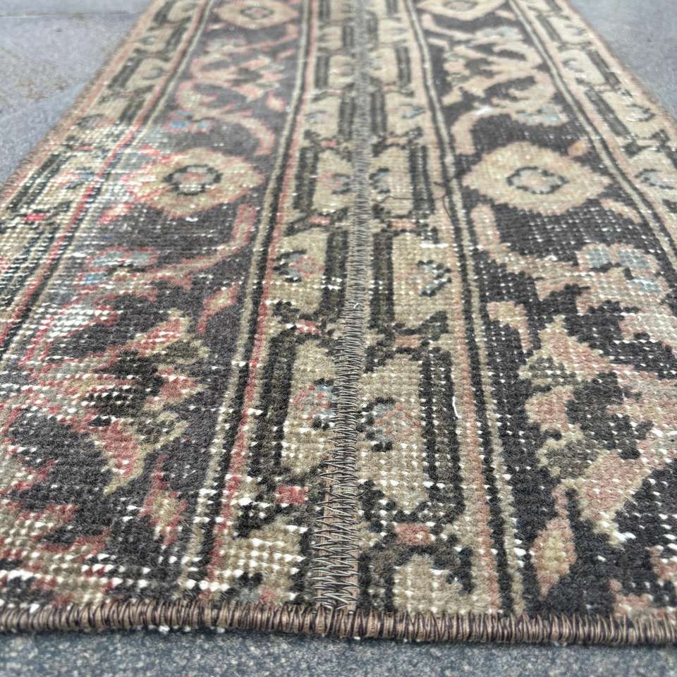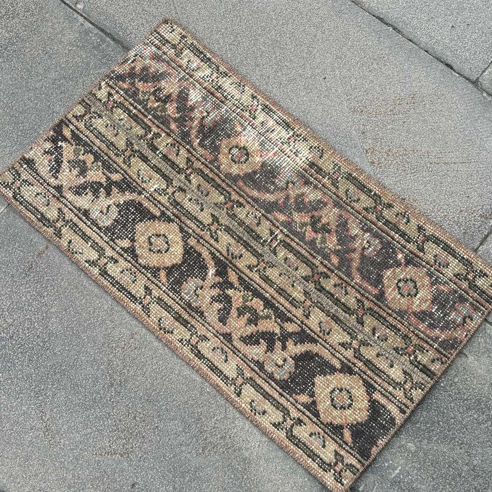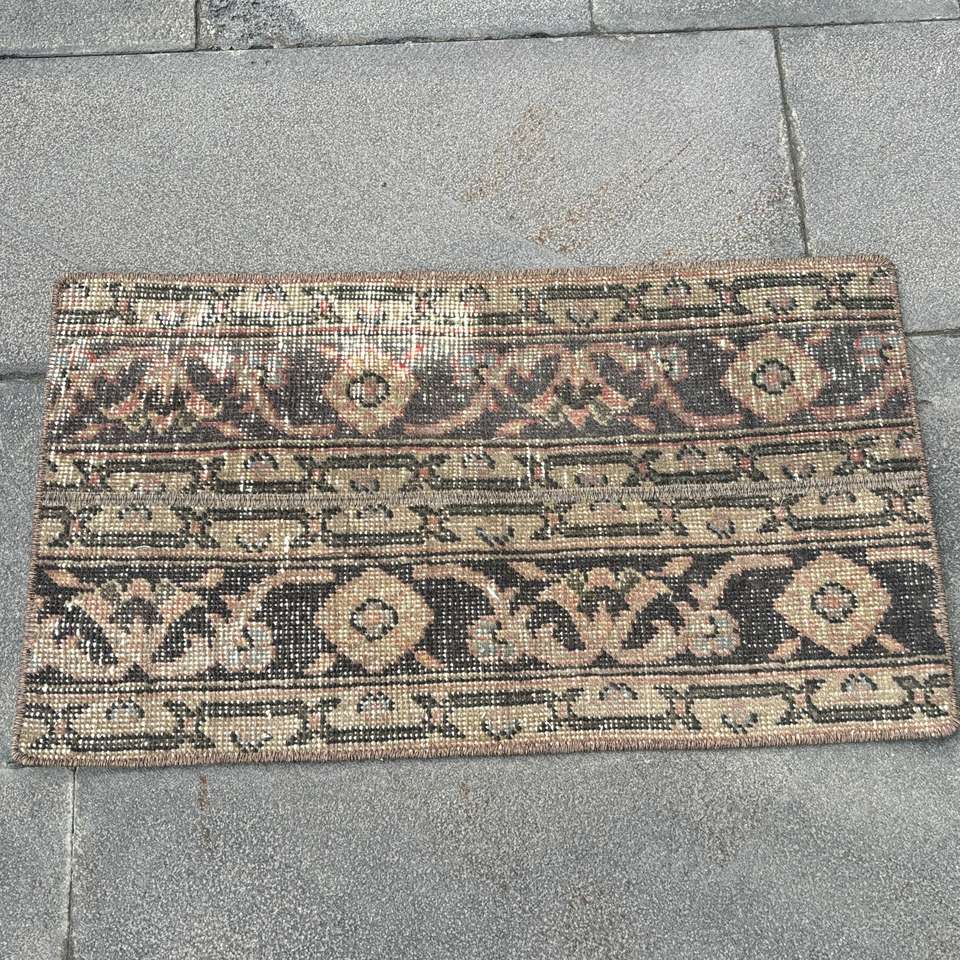 Tapis vintage 1,6x2,2 pieds, tapis turc, tapis persan en laine marron