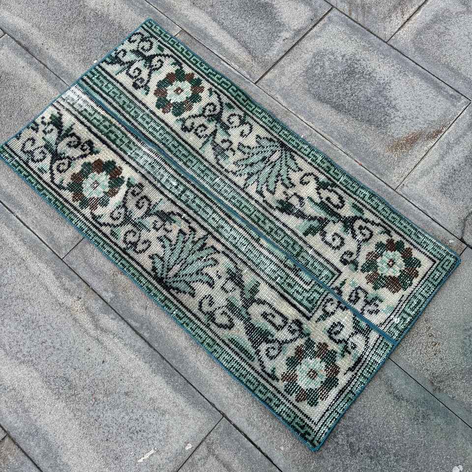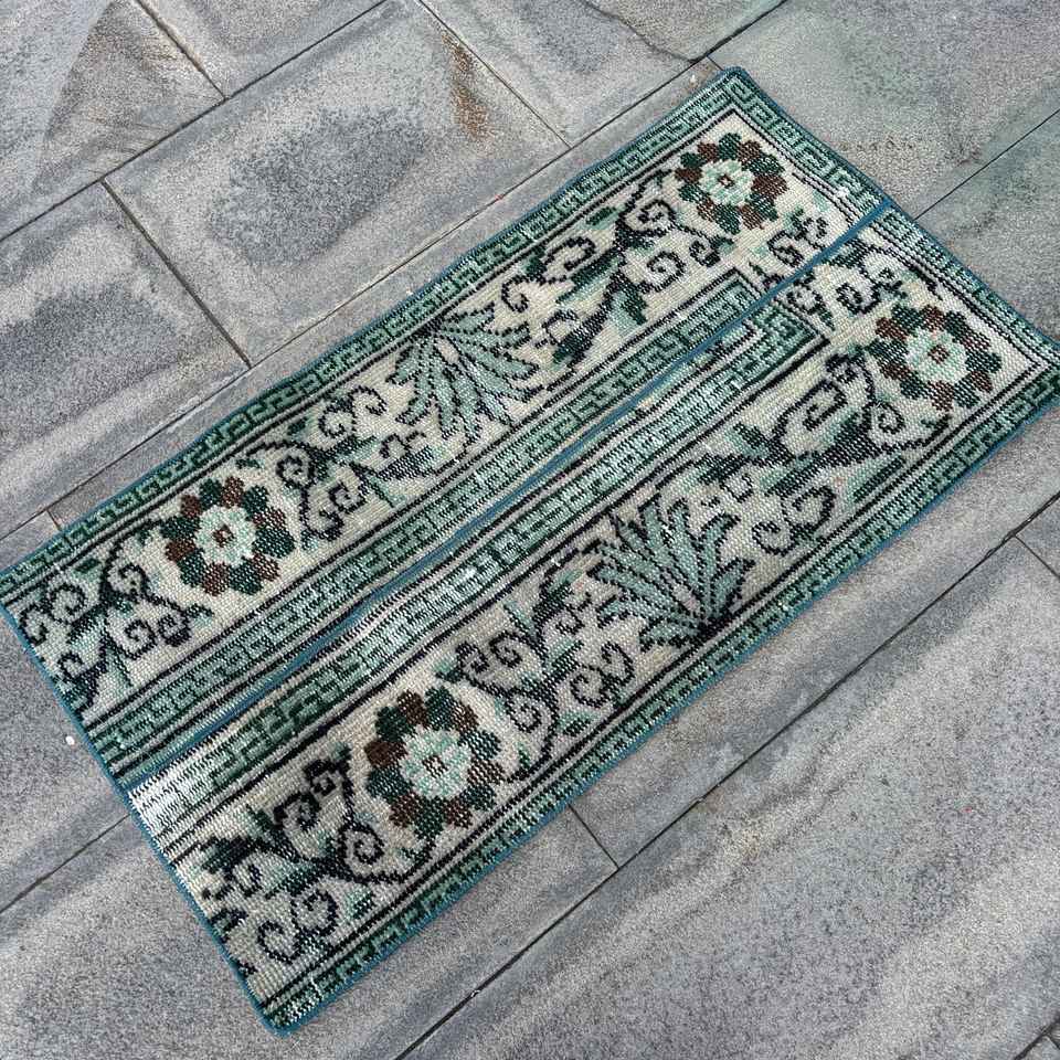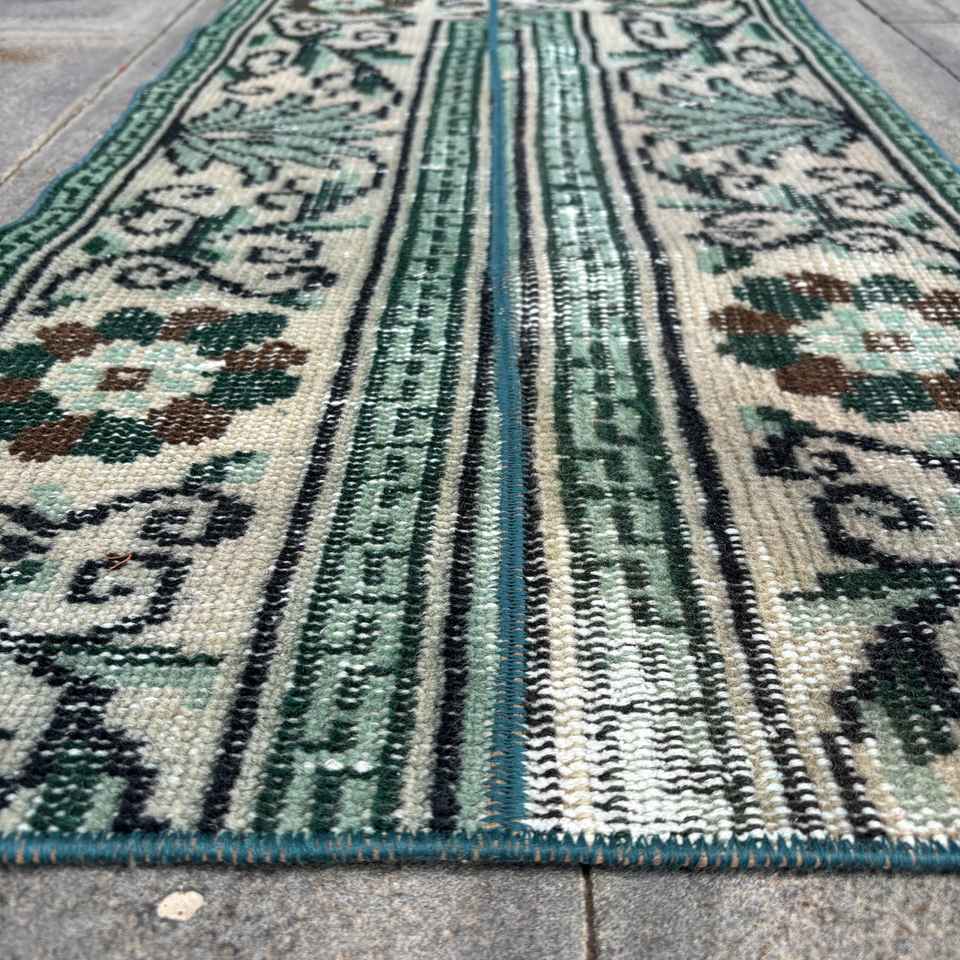 Tapis vintage 1,6 x 3,1 pieds, tapis turc, tapis en laine Ikat vert
