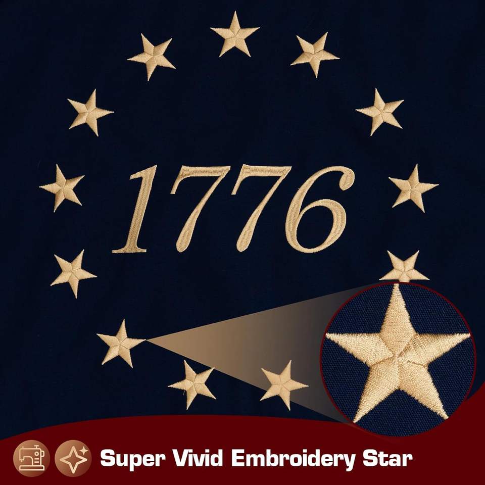 USA TOP FLAGSINC Vintage 1776 Betsy Ross Flag 3X5 Ft 100% Cotton Embroidered Stars Tea Stained American Outdoor Heavy Duty 13