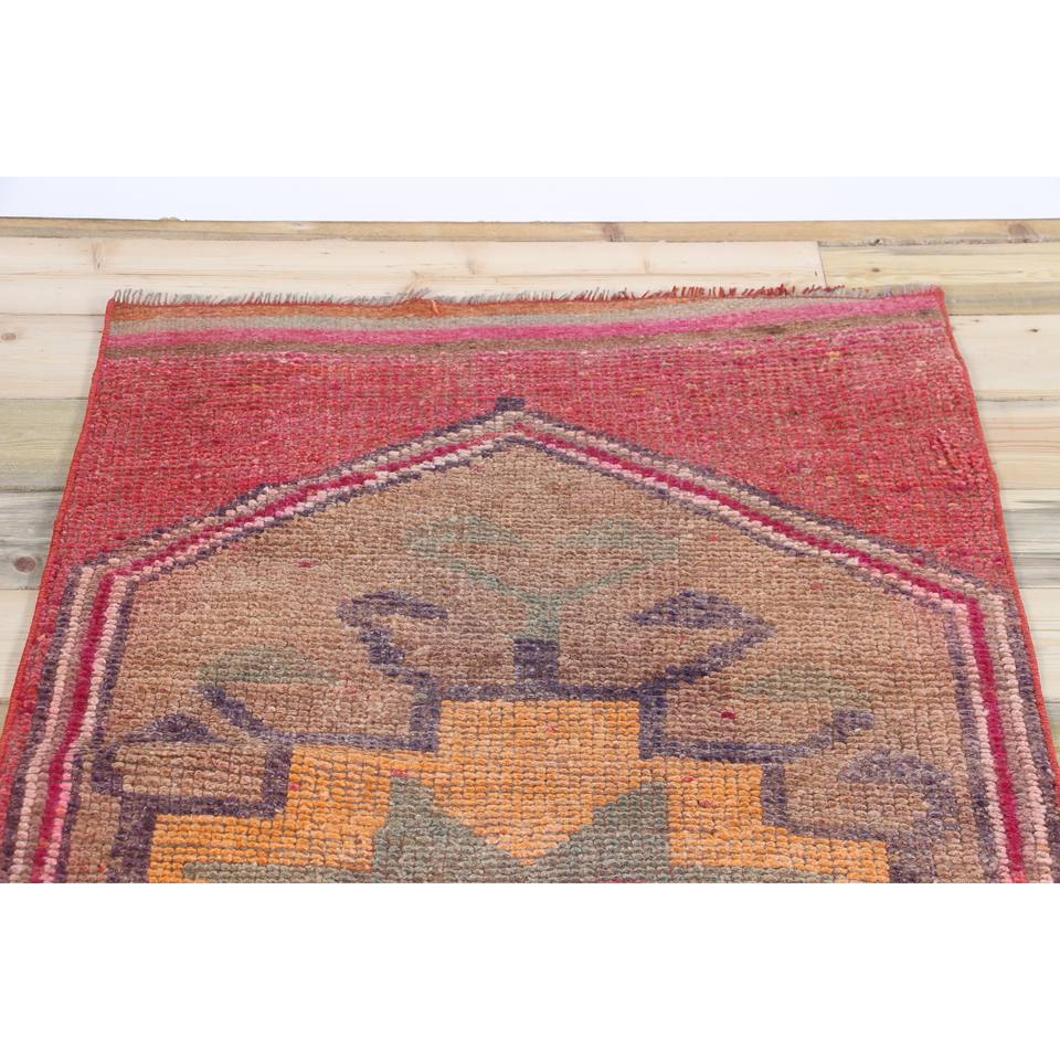 Tapis vintage 2,8 x 9,5 pieds, tapis turc, tapis géométrique rose