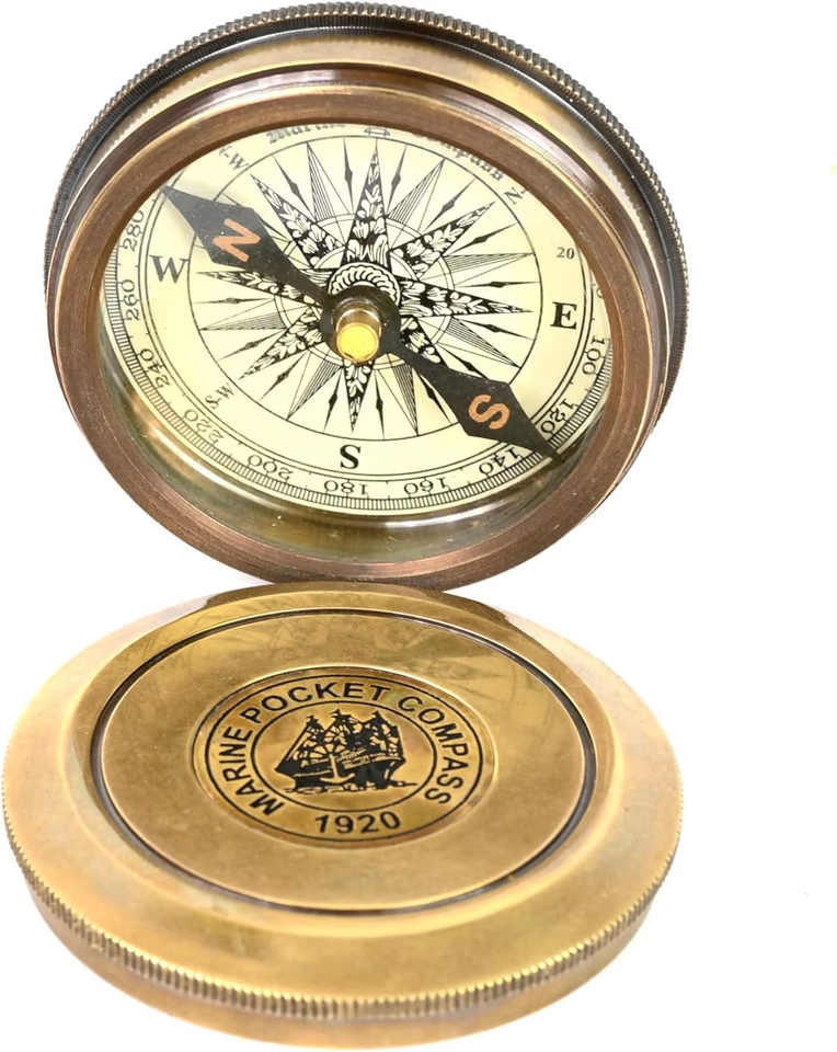Sculpture moderne de boussole de poche nautique en laiton massif vintage de 2 pouces avec couvercle à visser en métal poli massif fait à la main en Chine