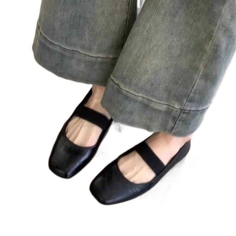 Vintage 2024 French Style Mary Jane Women's Shoes Red/Black Skull Pattern Elegant Versatile Ballet Flats Soft Sole for Evening