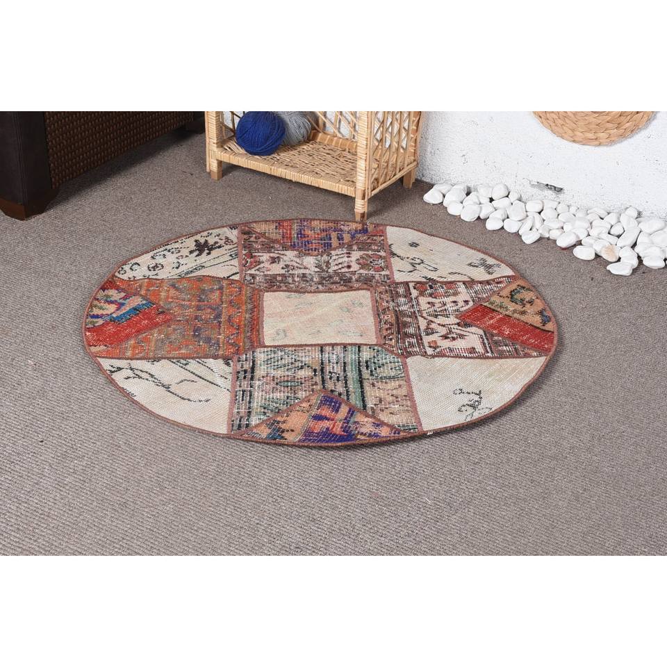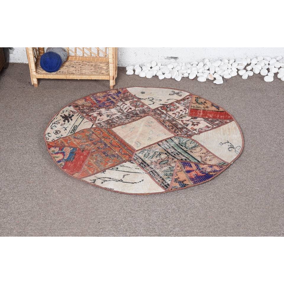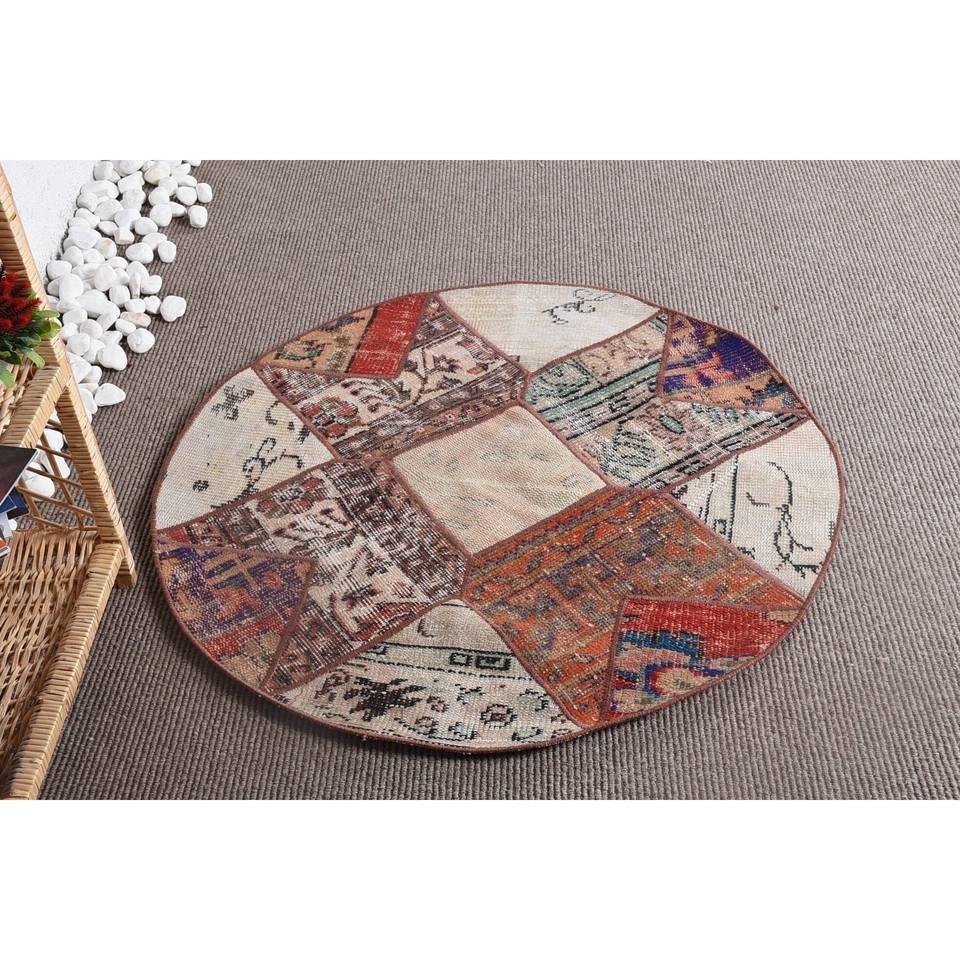 Vintage 3.4ft X 3.4ft tapis turc rouge et Beige plat tissage laine tapis avec support en Latex pour les décorations de salon