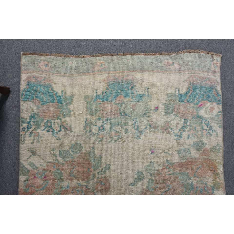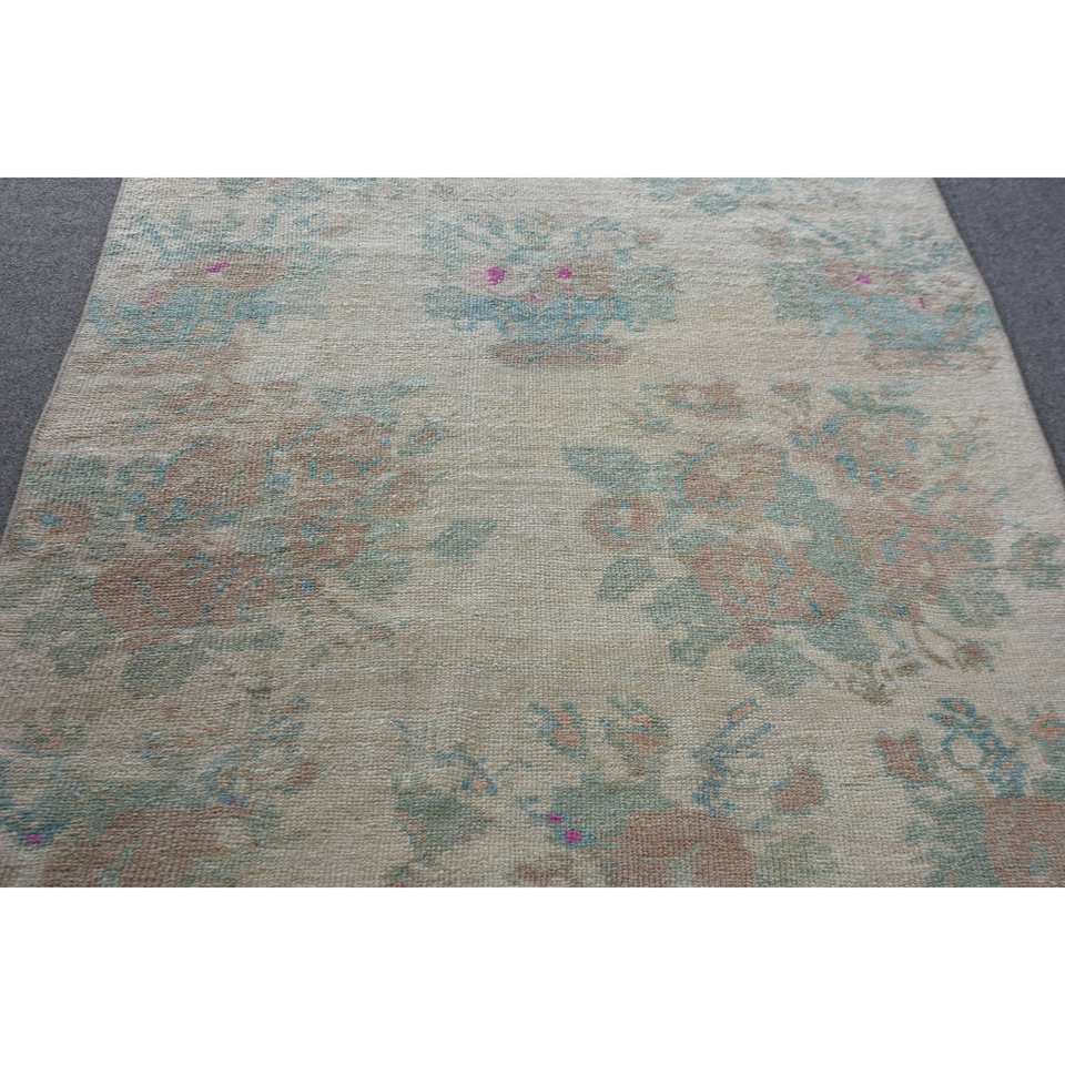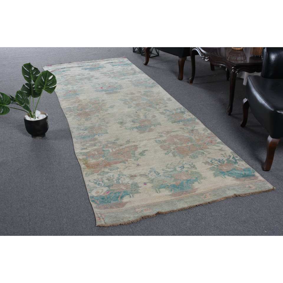 Vintage 3.5 X 10.2ft Beige Bleu Laine Tapis À La Main Turc Grande Zone Motif Abstrait Rectangle Couloir Conception Latex Tapis De Chambre