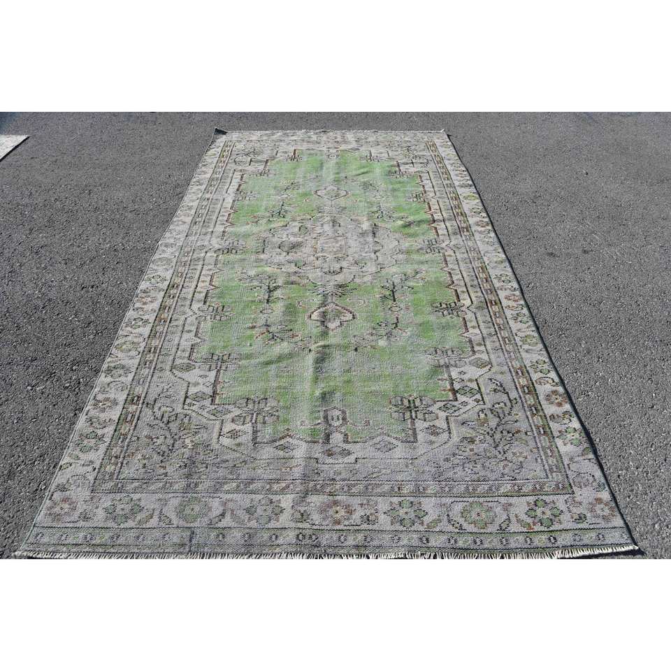 Vintage 5.3 X 9.4 ft Turkish Rug Green and White Flat Weave Wool Carpet with Latex Backing for Living Room Decorations