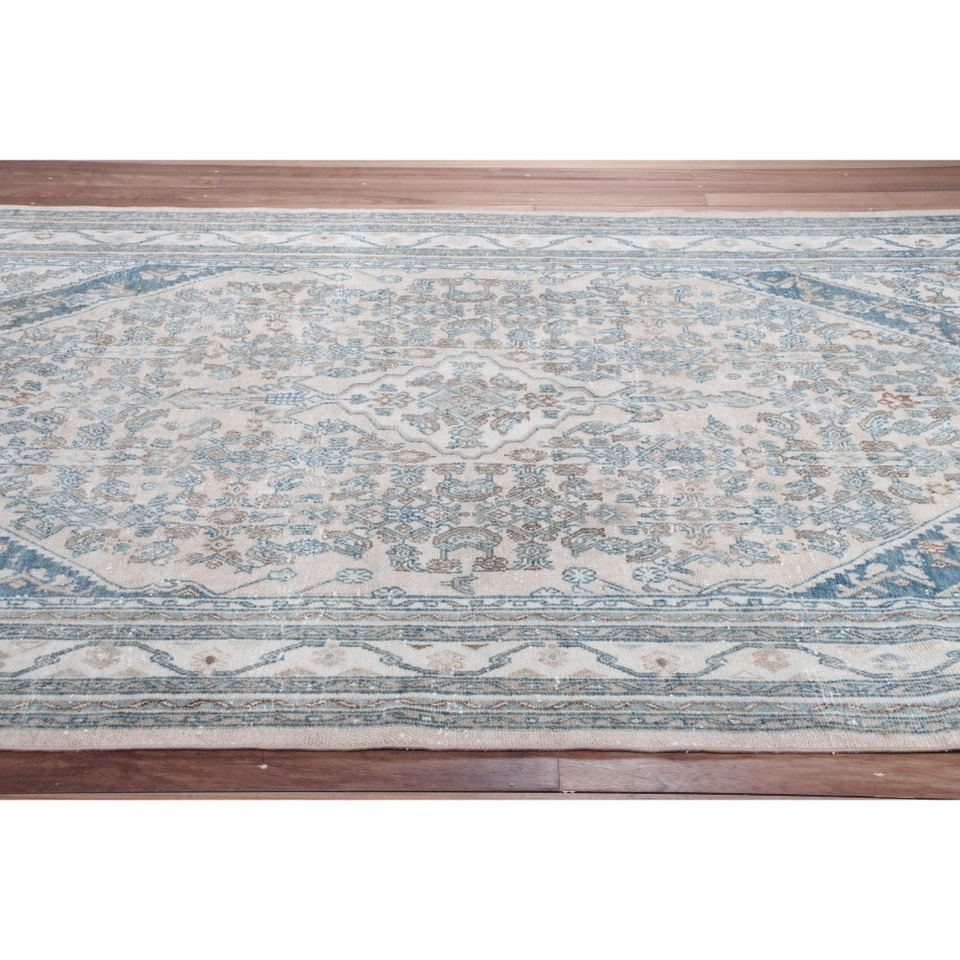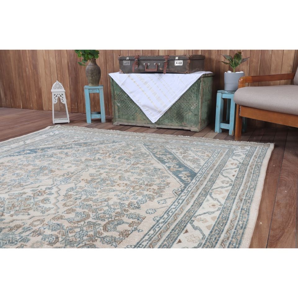 Vintage 6.7x9.5 ft Rug, Rug Turkish Rug, Beige Geometric Rug Wool
