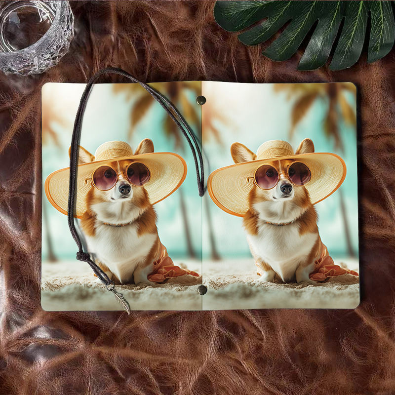 Vintage A6 Handmade Notebook 160 Pages Removable Paper Thoughtful Gift for Distribution Meeting Records with Corgi Hat Sungl